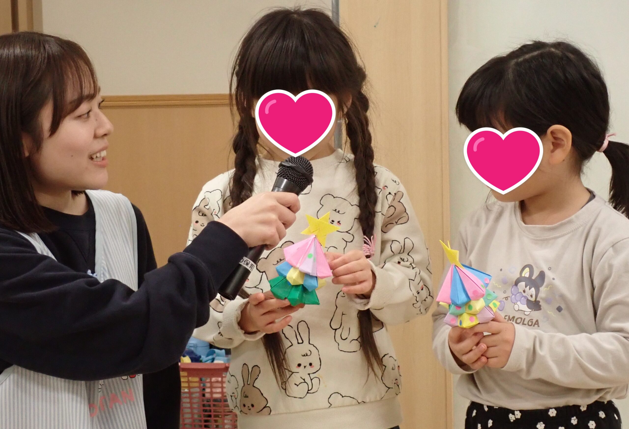 けやき組(5歳児)は折り紙でクリスマスツリーを作りました。