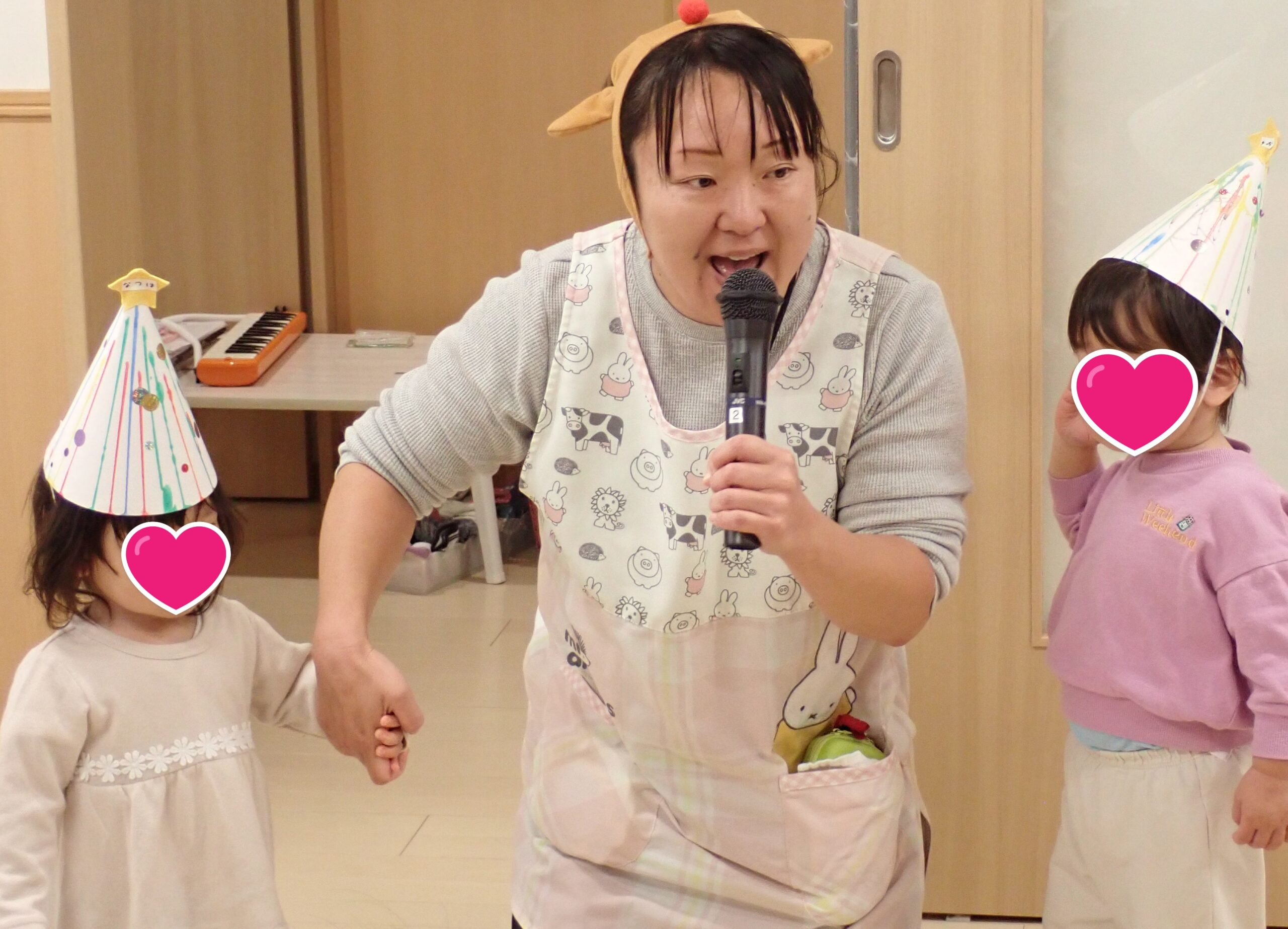 すもも組(0歳児)はかわいいとんがり帽子です。