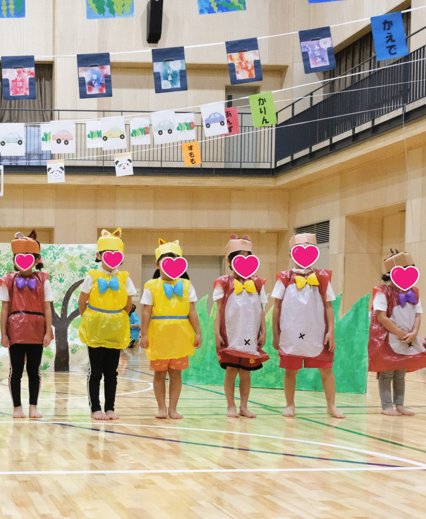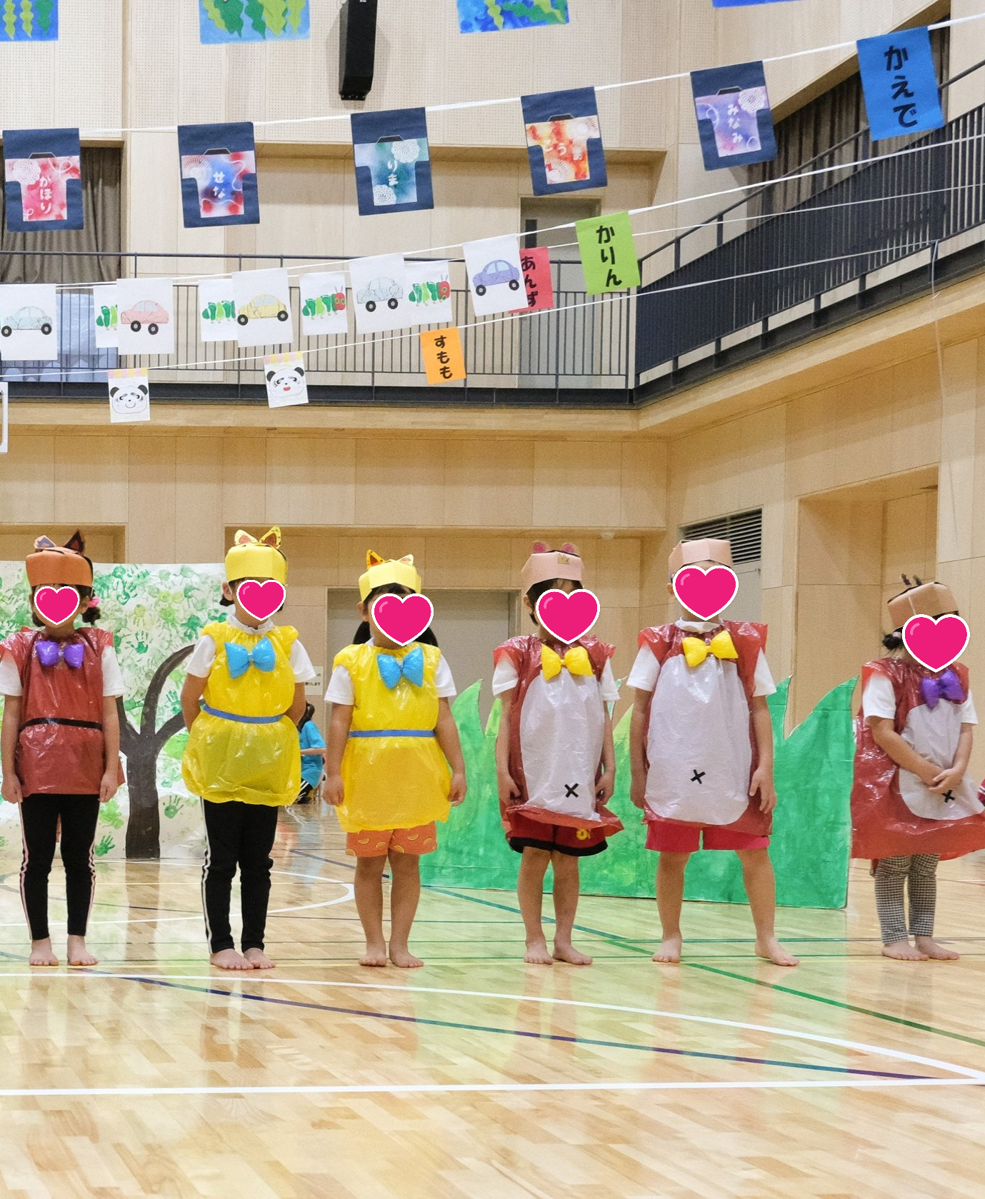 今年で最後のまなびっこフェスとなる5歳児クラス(けやき組)はみんなで劇遊び「ともだちほしいな おおかみくん」を披露しました。